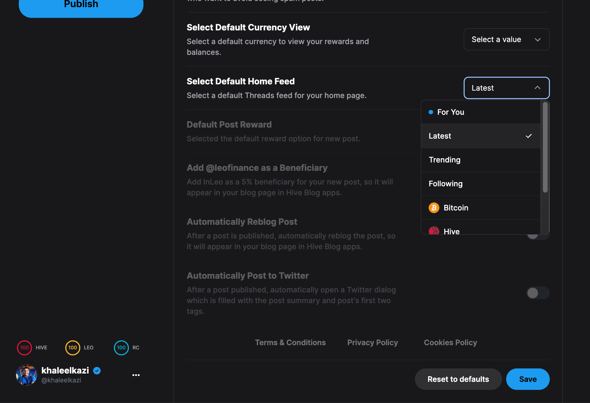 You can also now set a default feed from the other options (For You, Latest, Trending or Following). Here I've shown the example of me choosing the "Premium Lions" List by @jongolson.